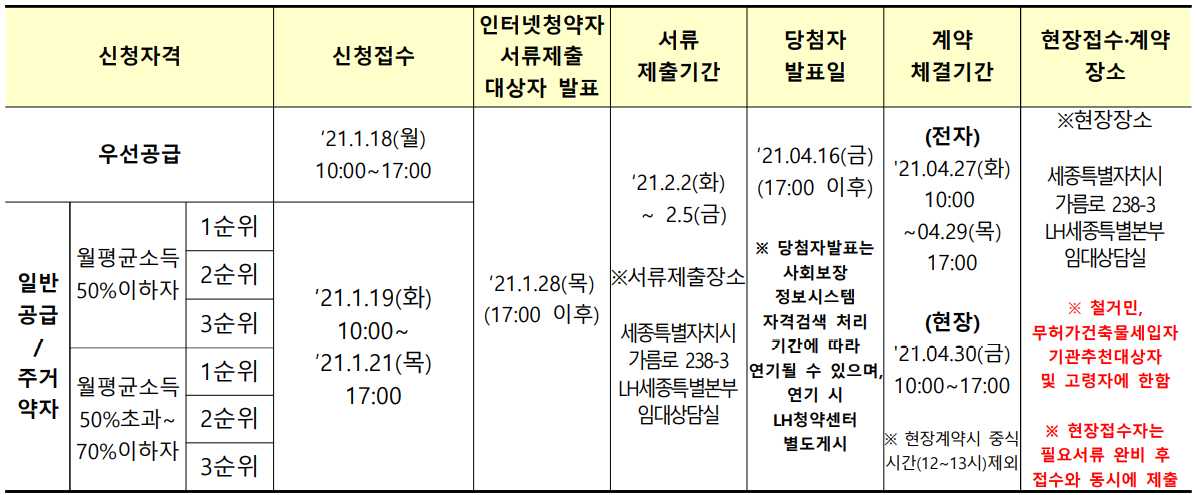 ① 1순위 : 입주자 모집공고일 현재 세종특별자치시에 거주하는 자