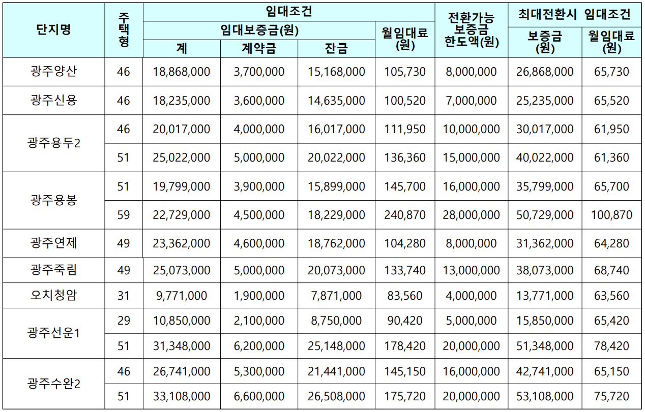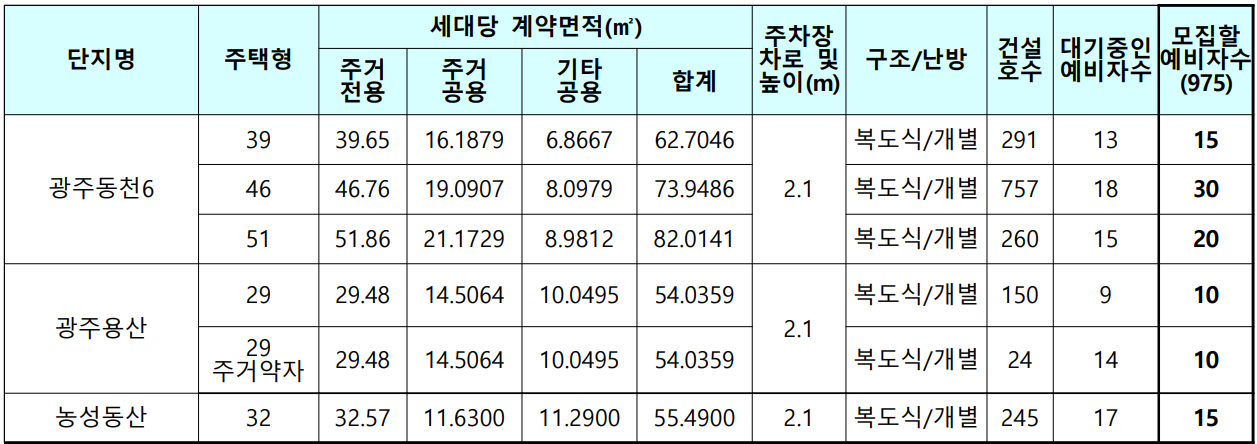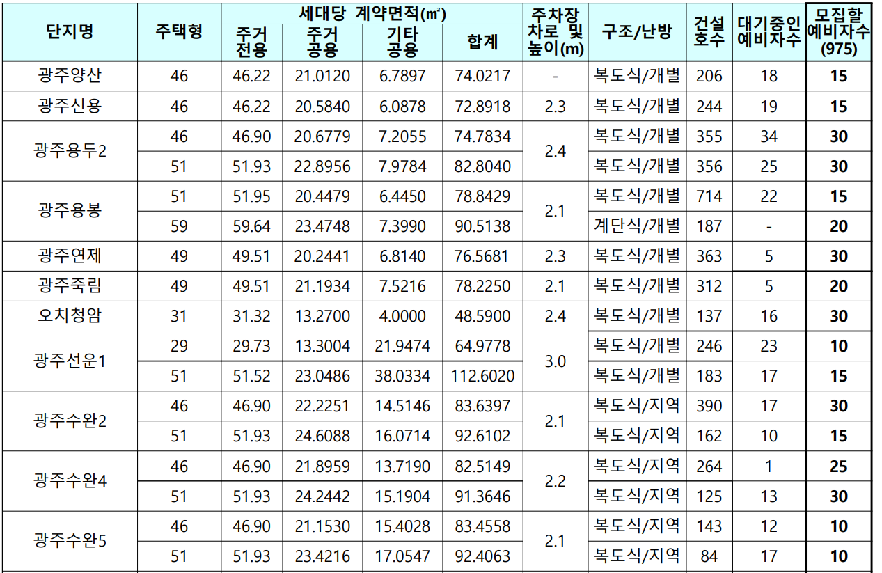 광주광역시 지역 국민임대주택 예비입주자 모집 공고