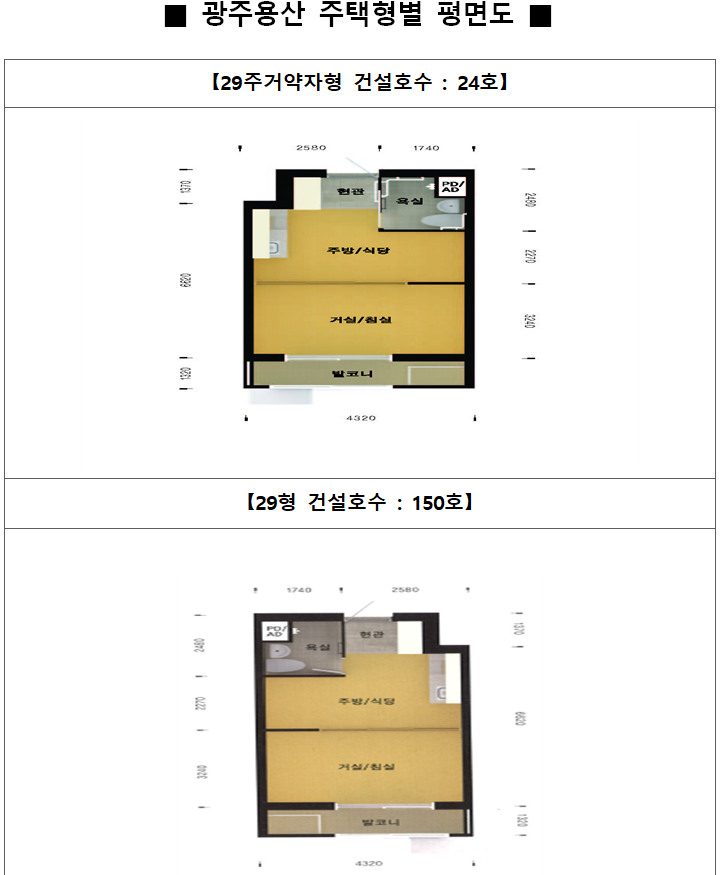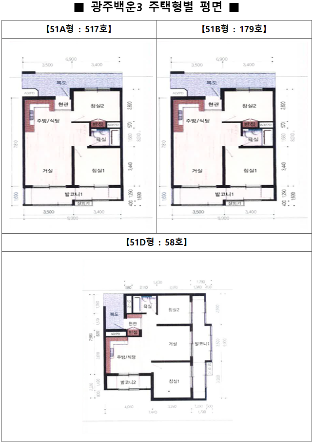 ▪ 동일 주택형에서 주거전용면적 등 세대당 계약면적이 다소 다를 수 있으나, 임대보증금 및 월임대료는 주택형별 로 동일하게 적용합니다.