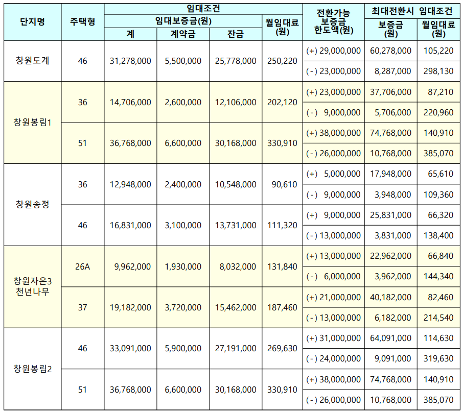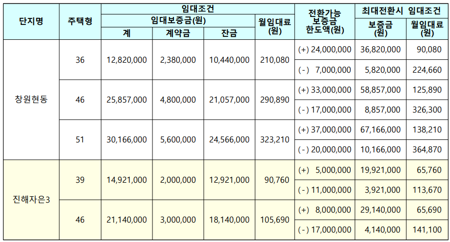 ▪ 임대조건의 임대보증금 및 월임대료는 모집공고일 현재 기준이며, 예비입주자로 선정된 고객께서 임대차계약을 체결하는 시점에 당해 주택의 임대조건이 변경된 때에는 변경된 임대조건으로 계약하셔야 합니다.