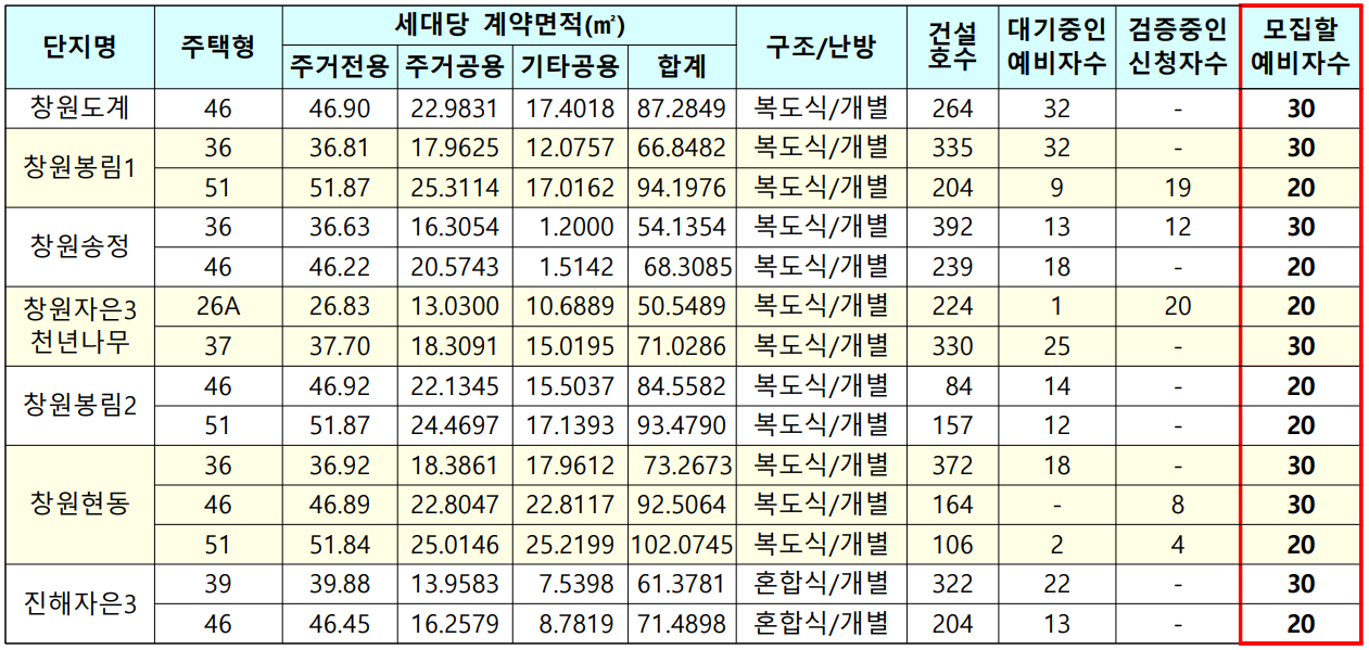 창원시 지역 국민임대주택 예비입주자 모집 공고