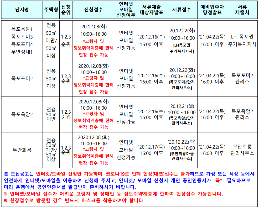 목포·무안지역 국민임대주택 예비입주자 모집 공고