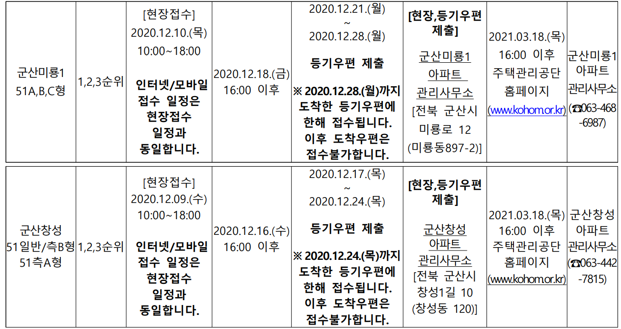 군산 국민임대주택 임대정보 : 군산미장 휴먼시아아파트, 삼학주공아파트, 군산미룡 주공1단지아파트, 창성주공아파트, 군산구암휴먼시아아파트