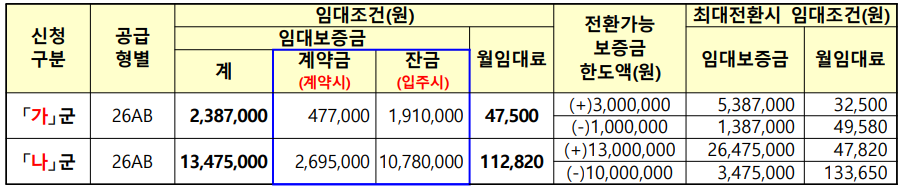 ■ 임대조건(임대보증금, 월임대료) (입주자모집공고일 : 2020.12.30)