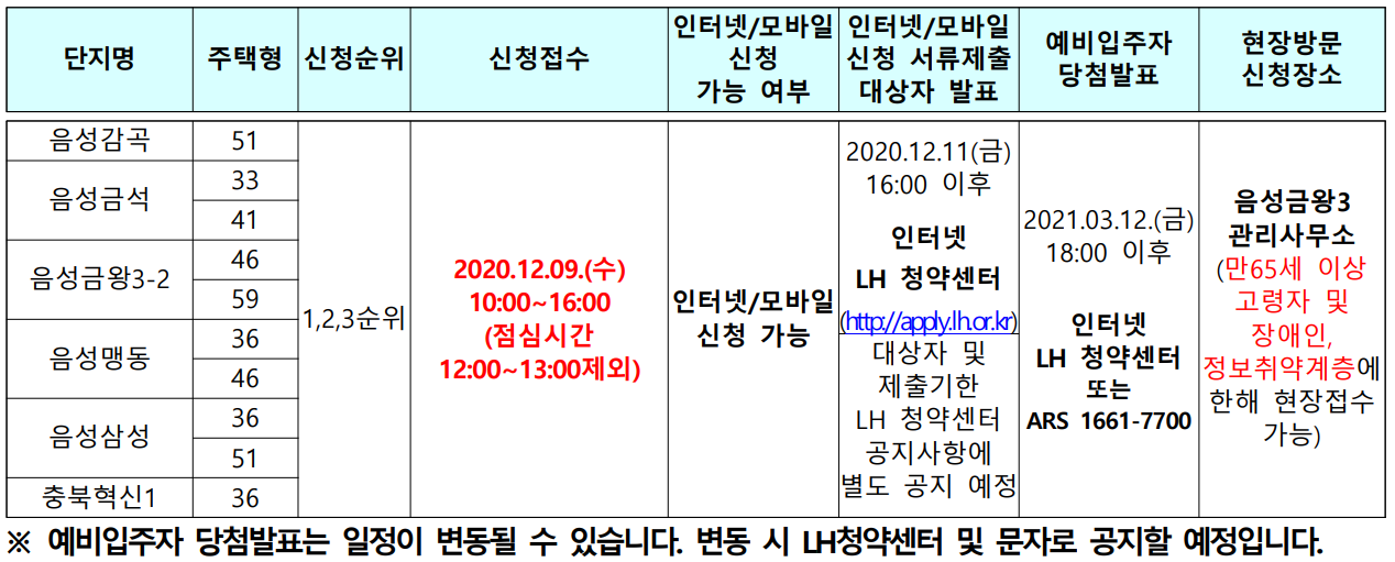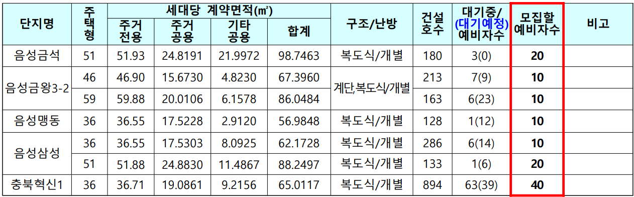 음성군 지역 국민임대주택 예비입주자 모집 공고