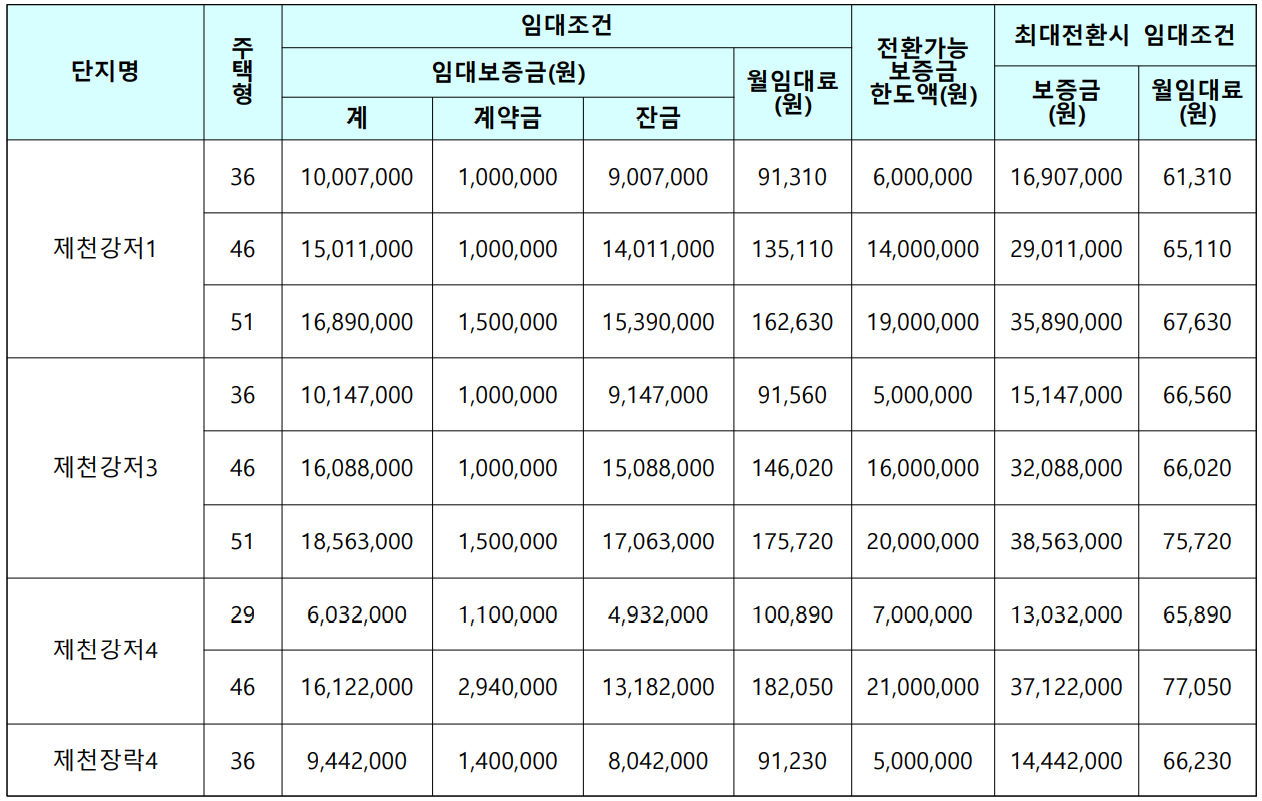 제천시 국민임대아파트 : 제천강저 휴먼시아1단지아파트, 강저휴먼시아3단지아파트, LH강저4단지아파트, 장락주공4단지아파트 임대정보
