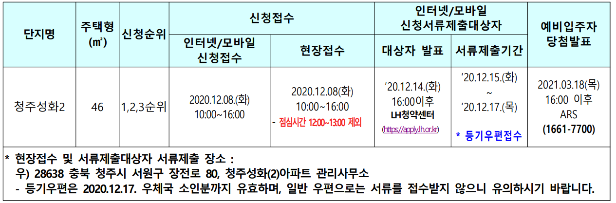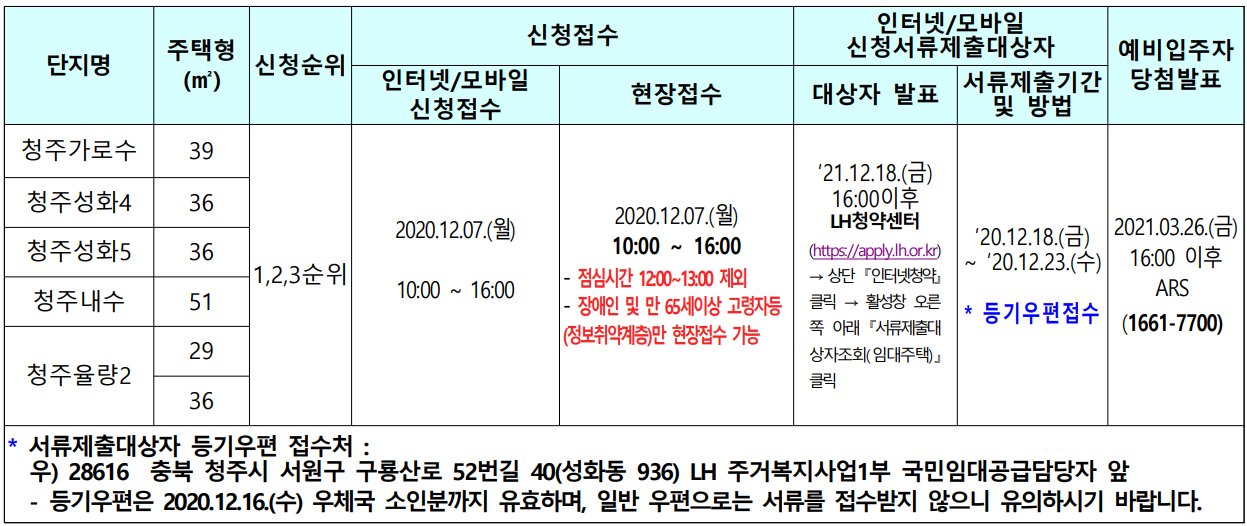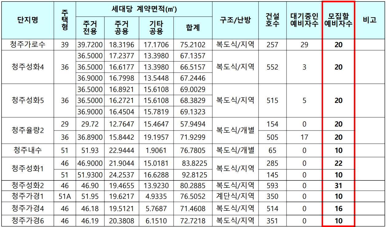 청주시 지역 국민임대주택 예비입주자 모집 공고 [청주가로수, 청주내수, 청주성화1․2․4․5, 청주율량2, 청주가경1․4․6]