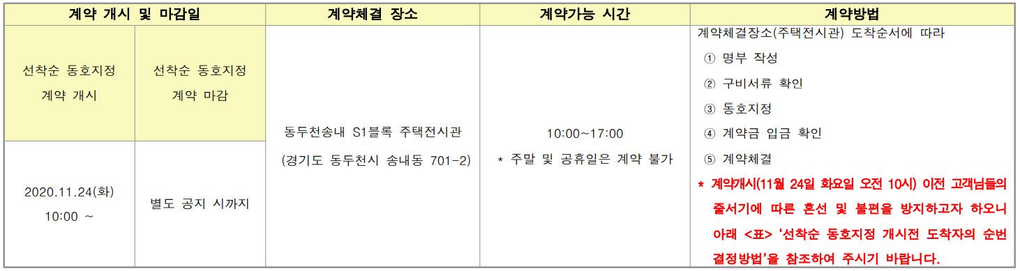 * 1인 2주택 이상 계약 가능하며, 동두천송내 S1블록 기계약자도 신규계약이 가능하나 기계약하신 동호와 신규계약하신 동호간의 변경은 불가하며, 기계약동호 해약 시 위약금이 발생합니다.