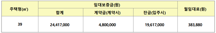 • 상기 임대조건은 동별․층별․향별․측세대 구분에 따른 차등이 없으며, 발코니 확장 및 외부샤시 설치비용이 포함되어 있습니다.