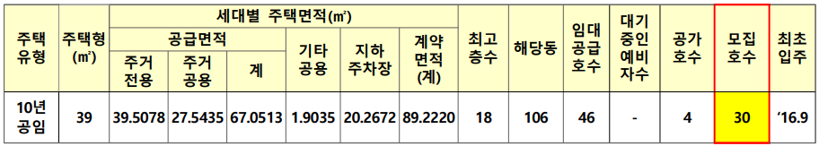 ■ 공급대상 : 창원율림(양덕 코오롱하늘채) 10년 공공임대주택 총 46세대 중 39㎡형 예비입주자 30세대