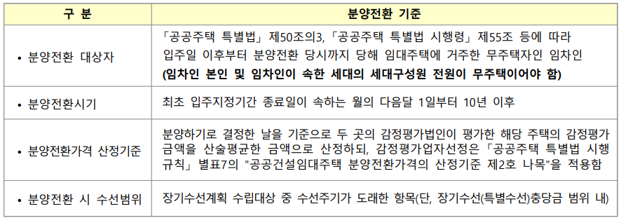 ■ 10년 분양전환공공임대주택 분양전환 기준
