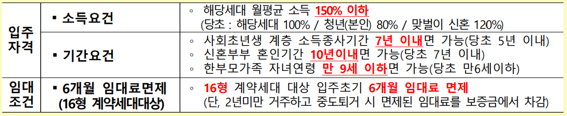 ■ 입주자격 요건 (소득기준 등 상세내용은 공고문 참조)
