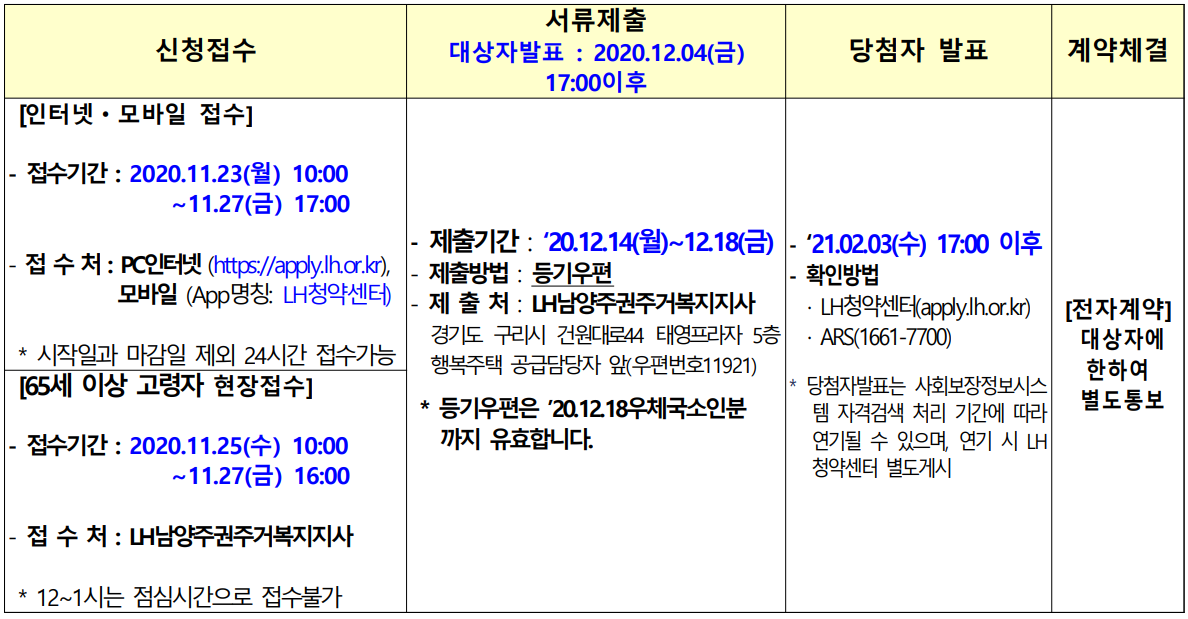 남양주시 지역 행복주택 예비입주자 모집 (입주자모집공고일 : 2020.11.06)