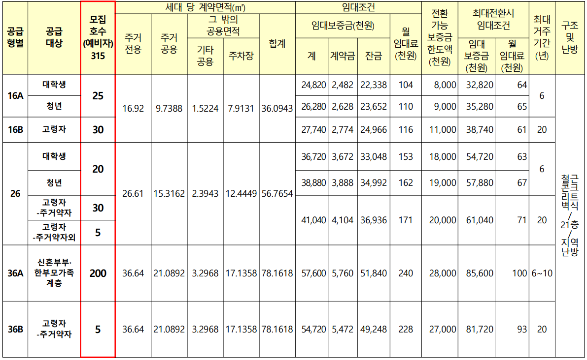 ※ 신청자격별 세부 자격요건은 공고문 본문(4. 신청자격 및 입주자 선정방법)을 확인하시기 바랍니다.