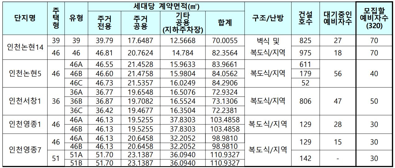 인천광역시(남동권) 지역 국민임대주택 예비입주자 모집 공고 요약
