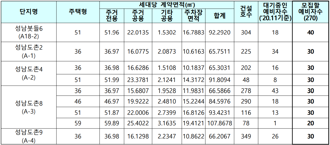 ■ 모집대상 주택 (입주자모집공고일 : 2020.11.5)