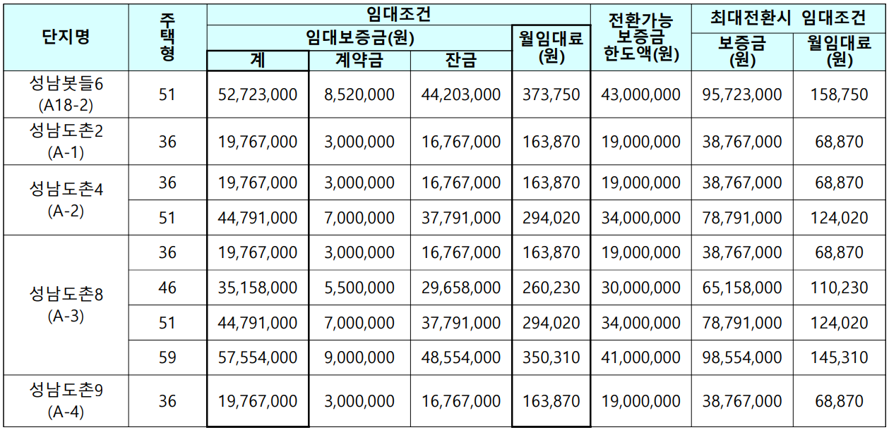 ▪ 임대조건의 임대보증금 및 월임대료는 모집공고일 현재 기준이며, 예비입주자로 선정된 고객께서 임대차계약 을 체결하는 시점에 당해 주택의 임대조건이 변경된 때에는 변경된 임대조건으로 계약하셔야 합니다.