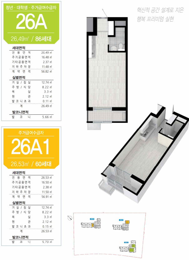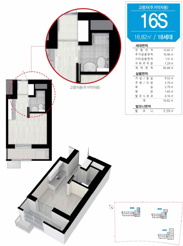 • 고령자에 배정된 주거약자용 주택은(16, 26, 36) 안전하고 편리한 주거생활을 위하여 편의시설이 설치된 주택으로 「공공주택 업무처리지침」에 따라 3층 이하에 공급됩니다. (만 65세 이상 고령자가 신청대상입니다.) 단, 고령자 계층은 일반26㎡형 주택도 신청 가능합니다.