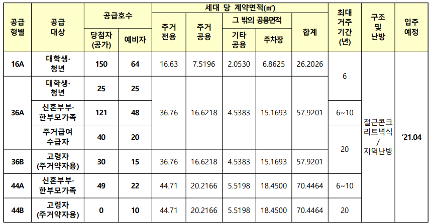 ■ 임대대상 (입주자모집공고일 : 2020.10.22)