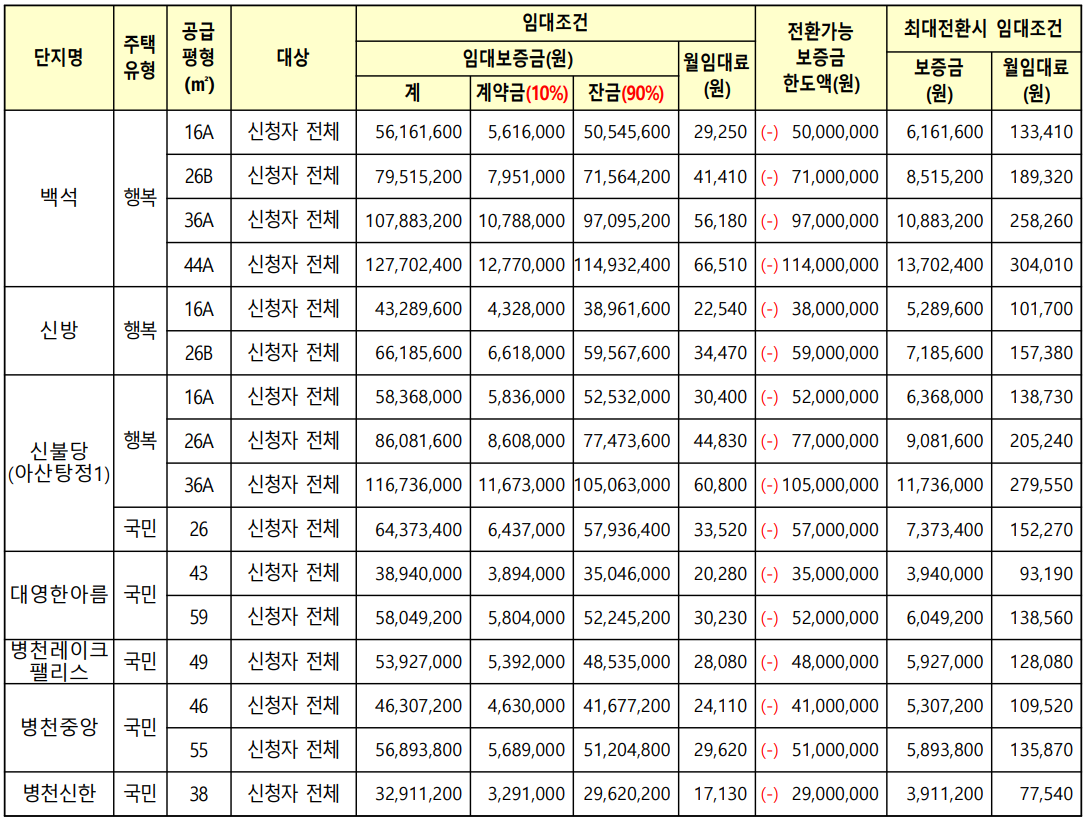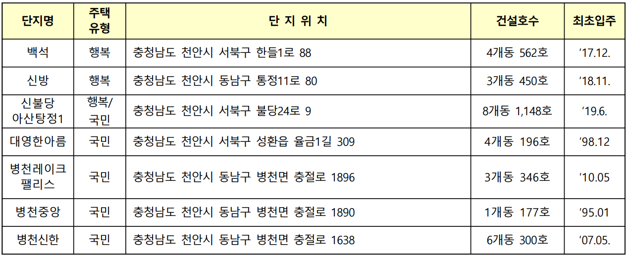 공고명 : 천안시 전세형 공공건설임대주택 입주자 모집