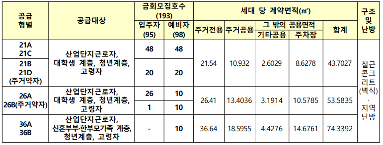 - 신혼부부 : 공고일 현재 혼인중이며 혼인기간이 10년 이내인 사람 또는 6세이하의 자녀를 둔 사람