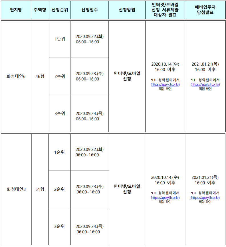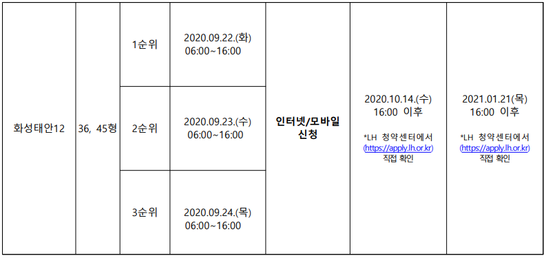 ■ LH 국민임대 아파트 모집일정 (입주자모집공고일 : 2020.9.7)