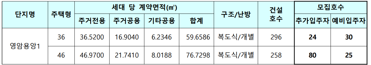 영암용앙1 국민임대주택 추가입주자[동호지정] 및 예비입주자 상시모집