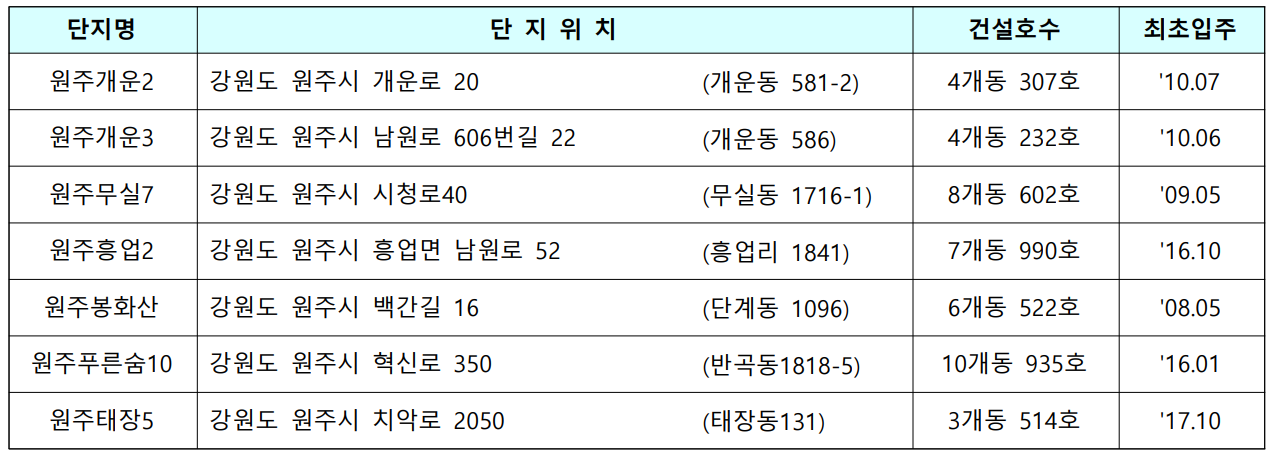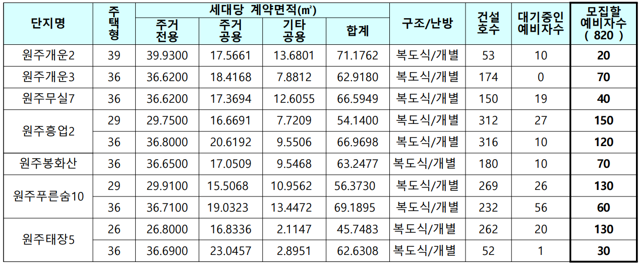 원주시 지역 국민임대주택 예비입주자 모집 공고