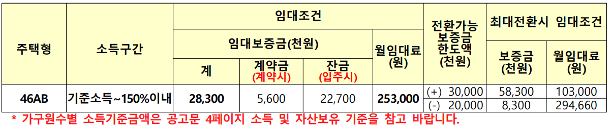 ■ 임대조건(임대보증금, 월임대료) (입주자모집공고일 : 2021.1.15)