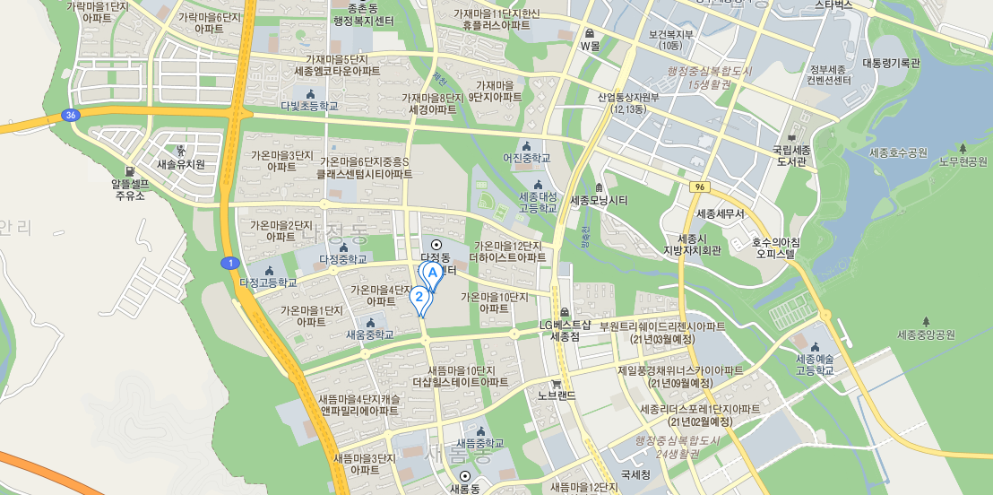 단지 위치 : 세종특별자치시 다정중앙로 20, 행정중심복합도시 2-1생활권 M6블록 국민임대주택 (가온마을 7단지)