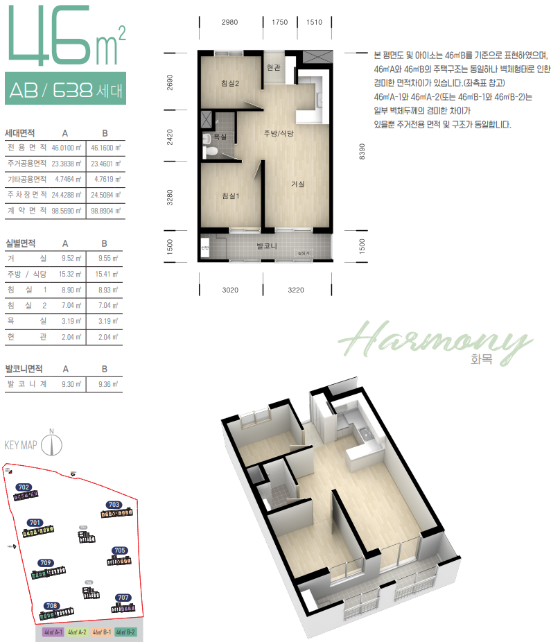 • 46형의 경우 46A와 46B를 구별하지 않고 통합하여 공급하며, 특정 전용면적으로 선택하여 신청하실 수 없습니다.