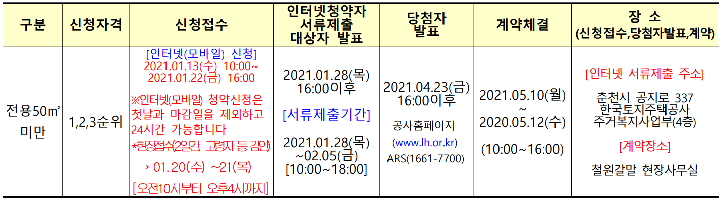 * 후순위 접수여부는 순위별 접수마감일 20:00이후 한국토지주택공사 청약센터(http://apply.lh.or.kr)에 게시합니다.